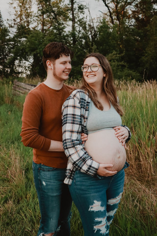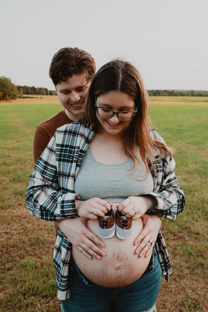 In 2021 I had the pleasure of shooting Dustin and Emily's maternity photos for their first baby and now they are pregnant with their second and living far far away from me (insert crying face emoji). Their maternity session was so magical, it was a beautiful late summer evening in at golden hour in an empty field. (Fields are one of my favorite places to shoot, they are the perfect blank canvas for portraits.) Dustin and Emily's love for each other and excitement about their little one really showed throughout this session!