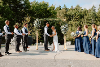 Though the day started with a foggy morning, the sun graciously emerged just in time for their ceremony, creating a romantic ambiance that perfectly complemented their vows. The couple exchanged promises surrounded by their closest friends and family, all of whom were there to celebrate this beautiful union.